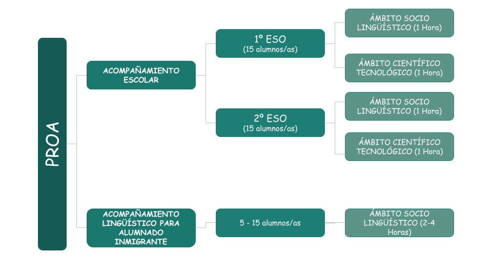 El horario del PROA para los grupos de 1º y 2º ESO se desarrollan los lunes y miércoles de 16:00 h a 18:00h