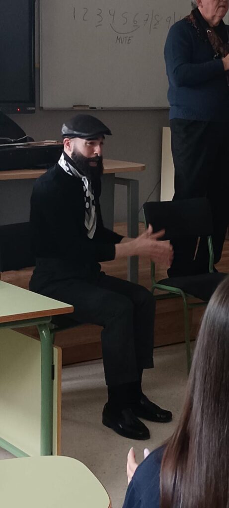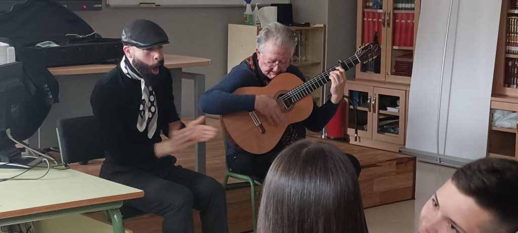 Además, contamos con la visita especial de un artista, «tocaor» de guitarra flamenca, que ofreció una actuación para el alumnado de 2º de la ESO B y D. Durante esta actividad, los estudiantes tuvieron la oportunidad de escuchar diversos palos flamencos y disfrutar de la interpretación de un poema de Antonio Machado acompañado de una guitarra flamenca.